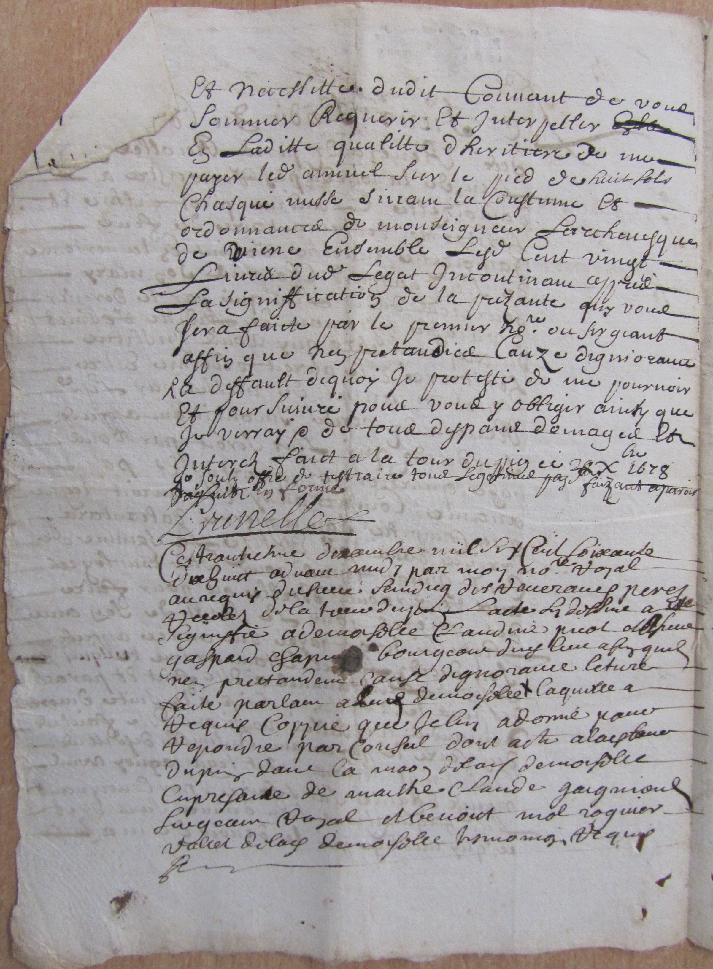 Fondation pour l'entretien d'un prédicateur - Fontaines, Défense de construire des charbonnières près du couvent - Pièces de procédure