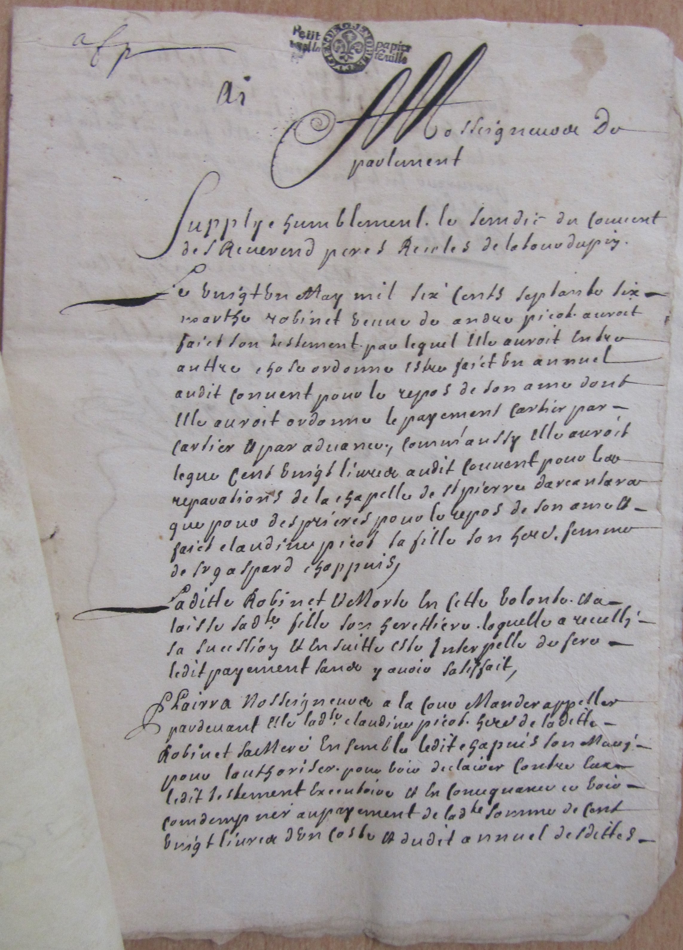 Fondation pour l'entretien d'un prédicateur - Fontaines, Défense de construire des charbonnières près du couvent - Pièces de procédure