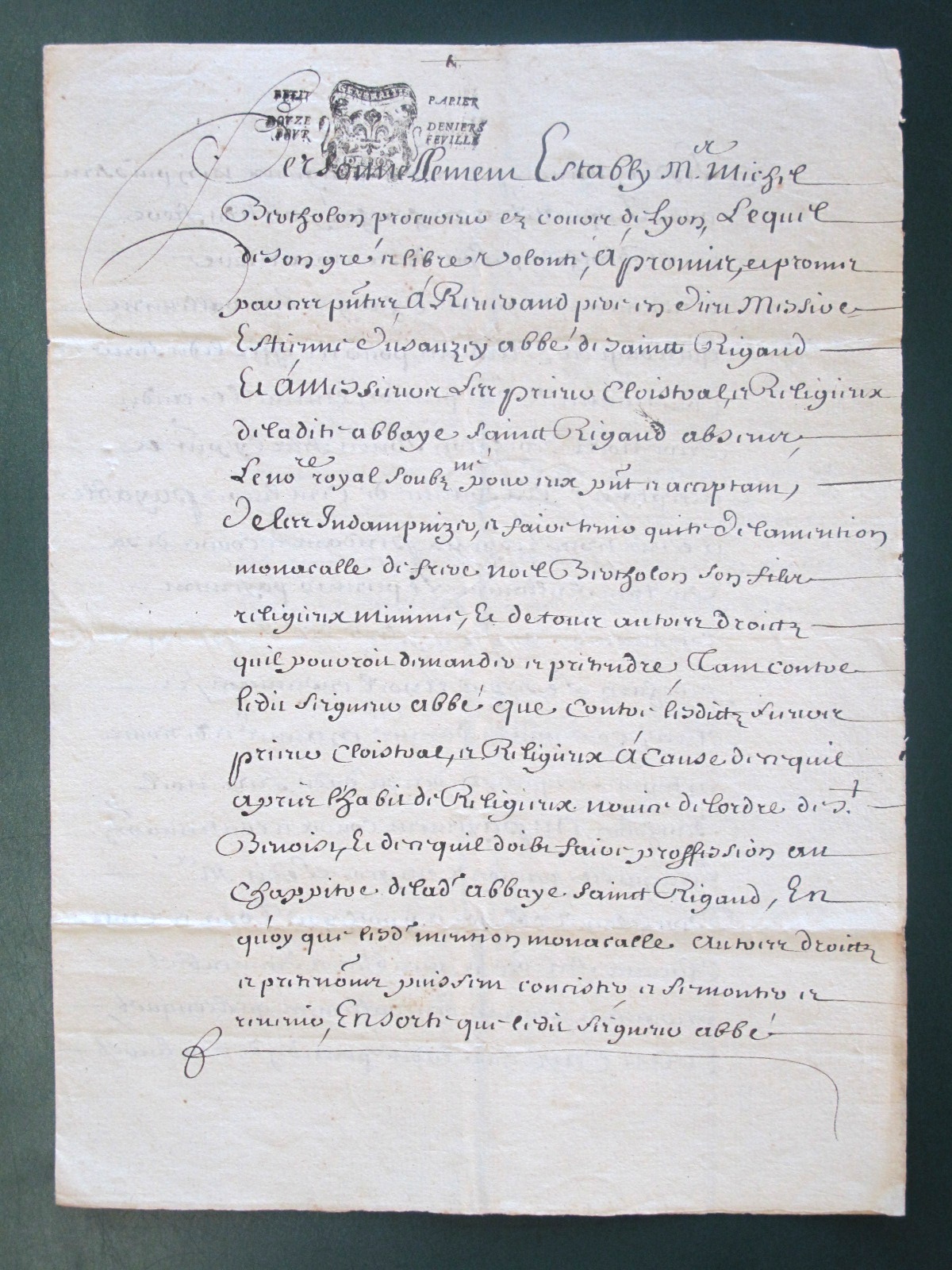 Archives de l'abbaye de St-Rigaud (1670-1682)
