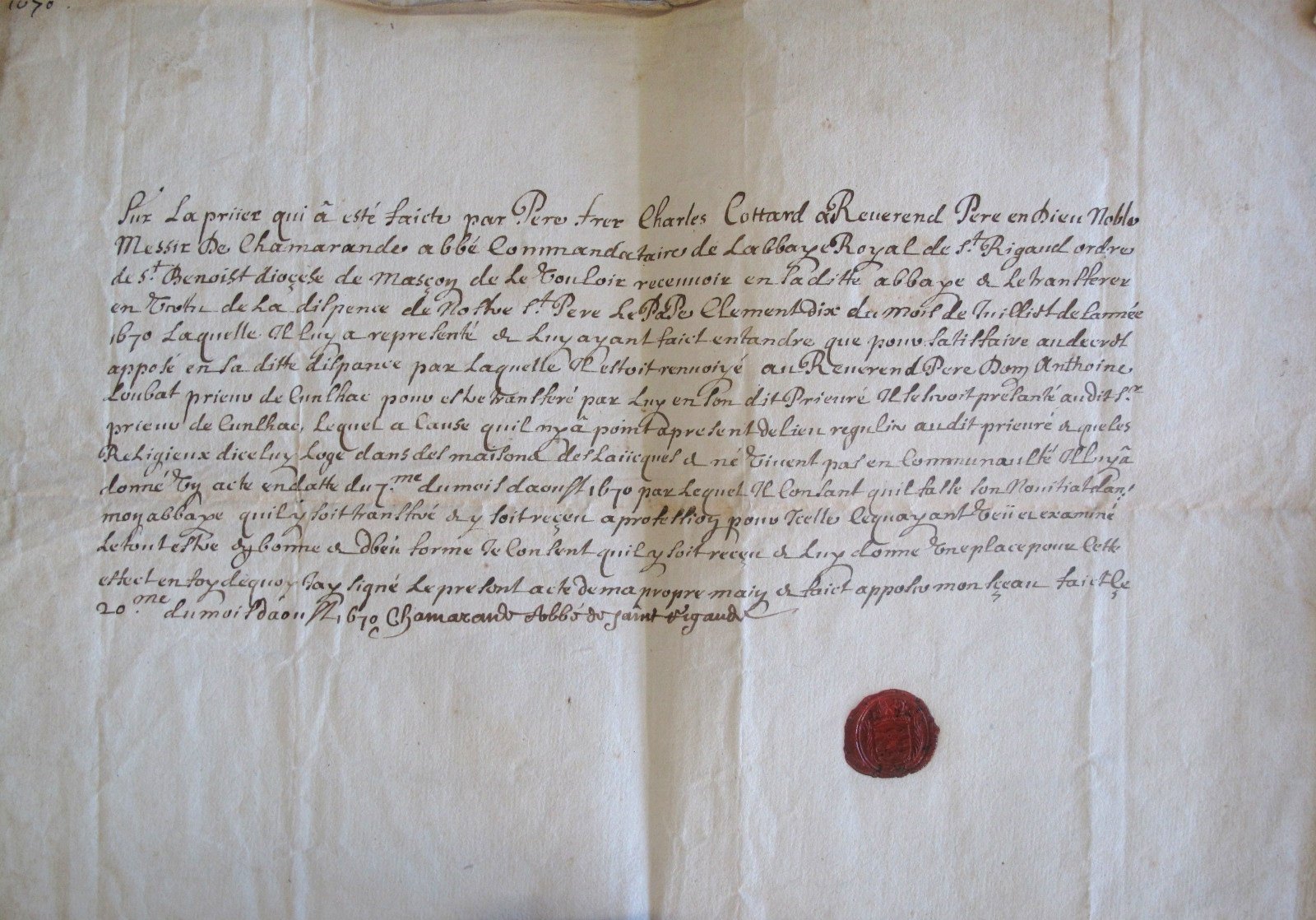 Archives de l'abbaye de St-Rigaud (1670-1682)