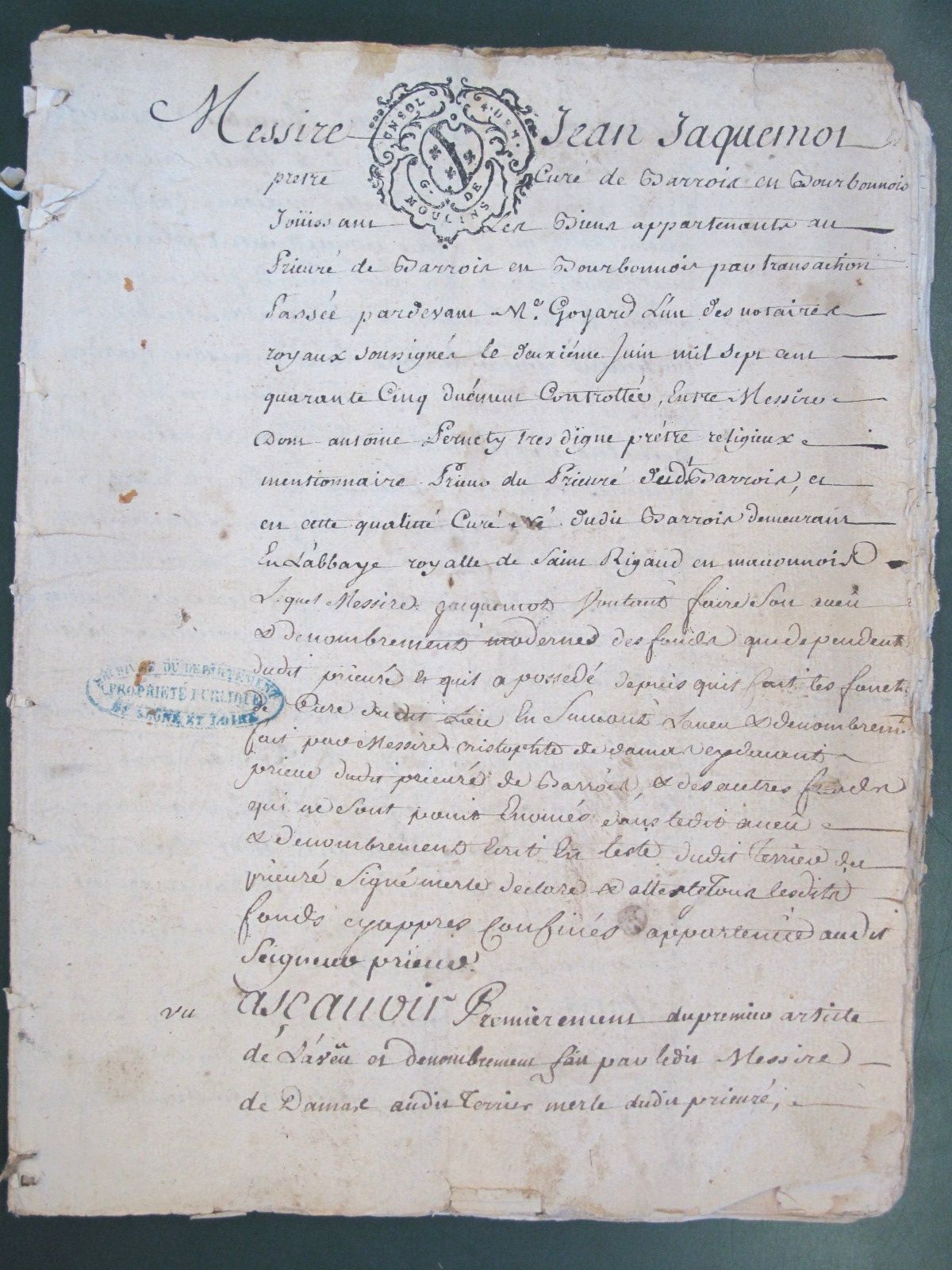 Archives de l'abbaye de St-Rigaud (1740-1749)