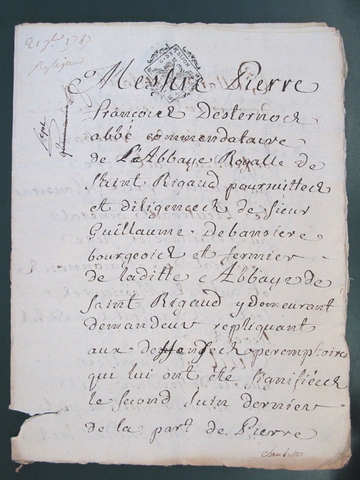 Archives de l'abbaye de St-Rigaud (1740-1749)