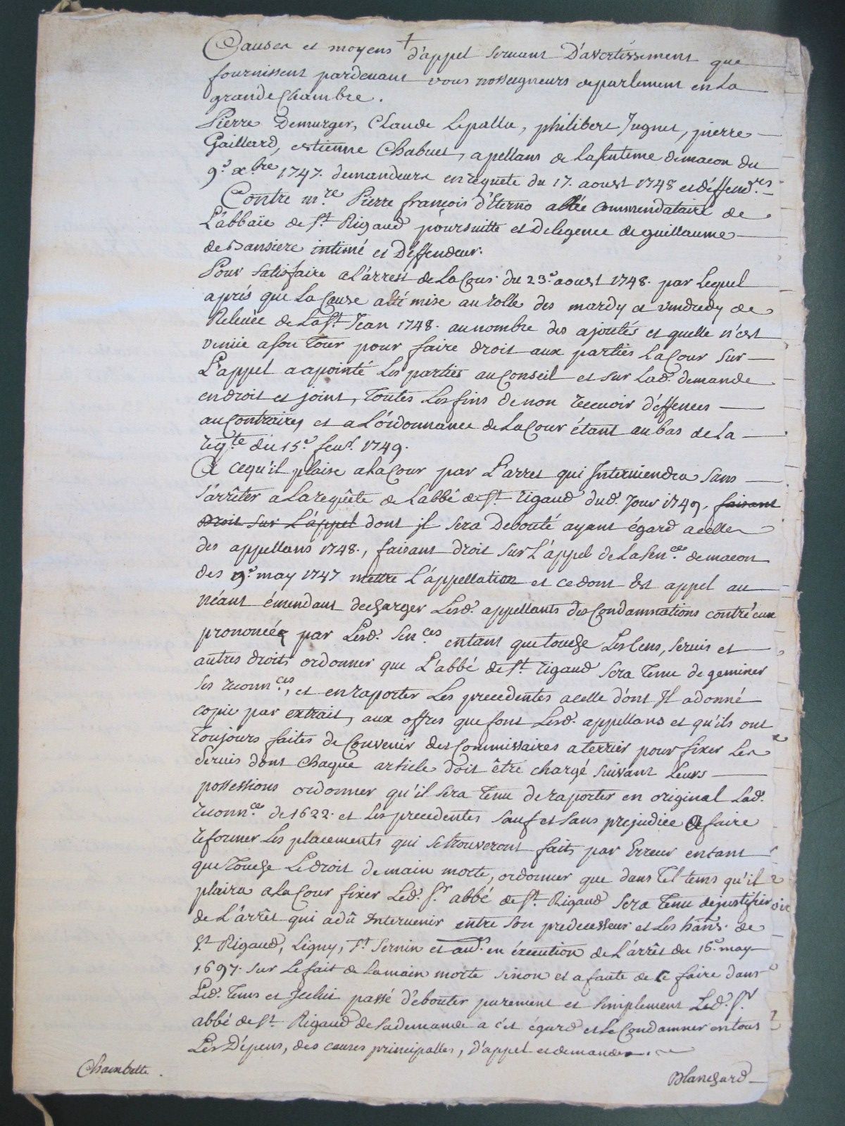 Archives de l'abbaye de St-Rigaud (1740-1749)