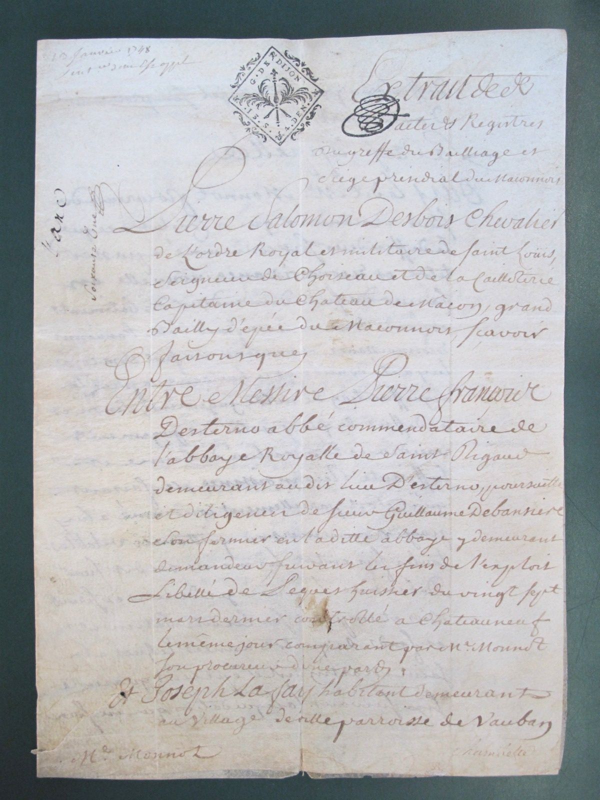 Archives de l'abbaye de St-Rigaud (1740-1749)