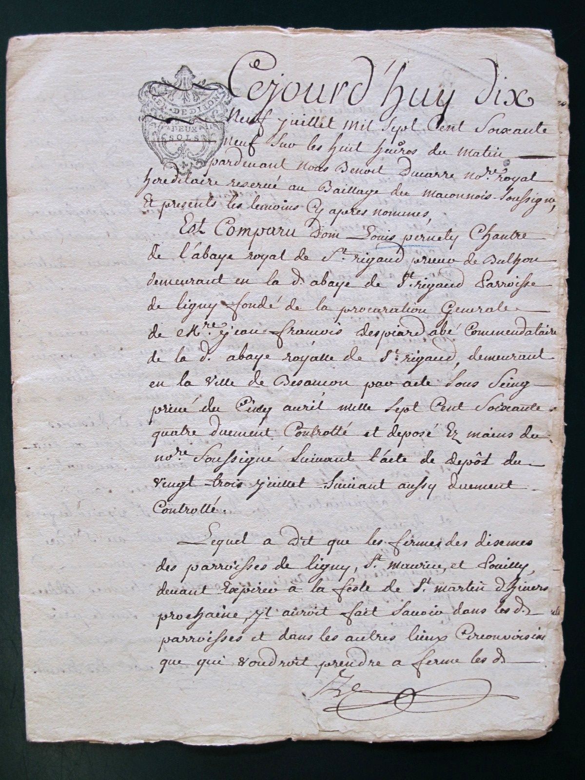 Archives de l'abbaye de St-Rigaud (1766-1798)
